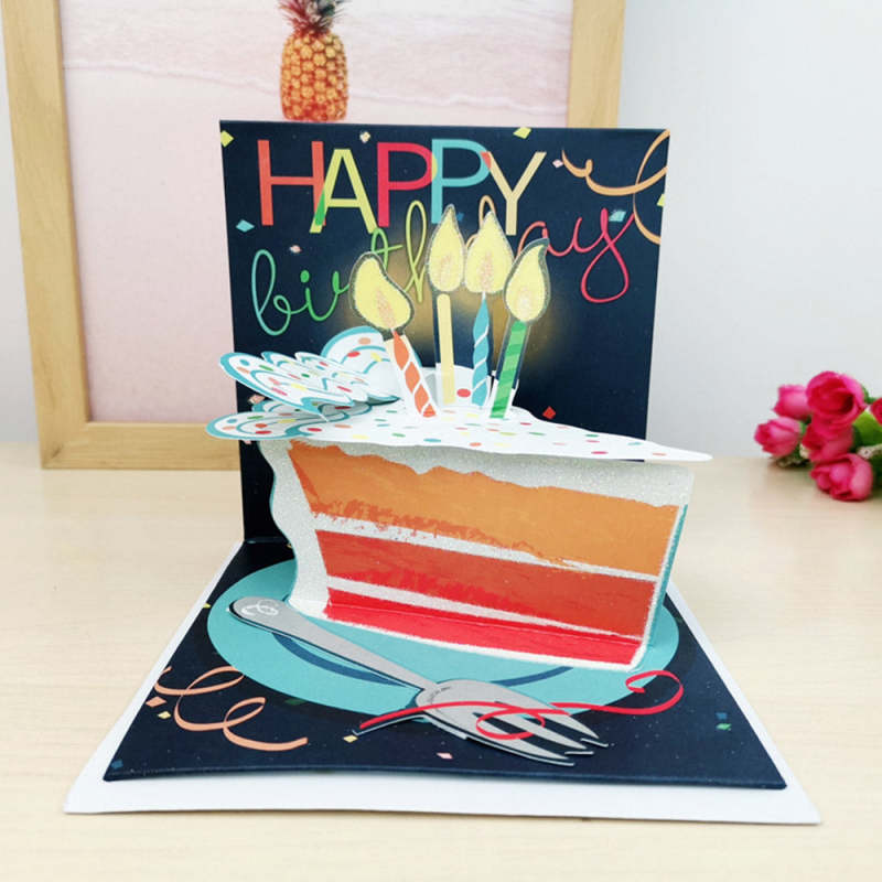 Creative 3D Pop-Up Birthday Card Candle Light Cake Pop Up Greeting Card
