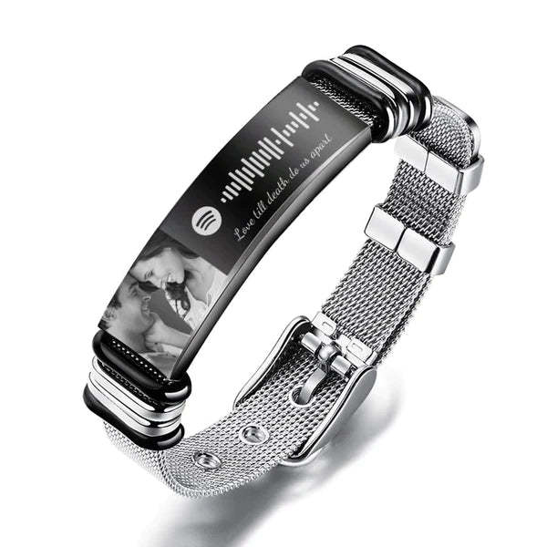 Custom Spotify Code Bracelet Photo And Engraved Stainless Steel Bracelets Best Gifts for Men Gift For Lover