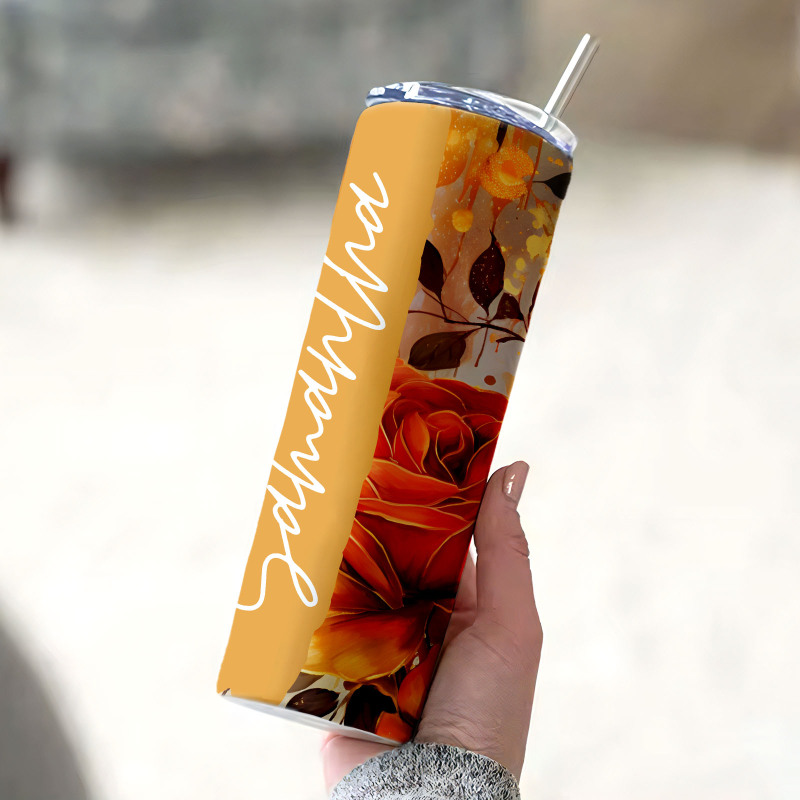 Custom Name Floral Tumbler Personalized Water Cup Skinny Wedding Gift