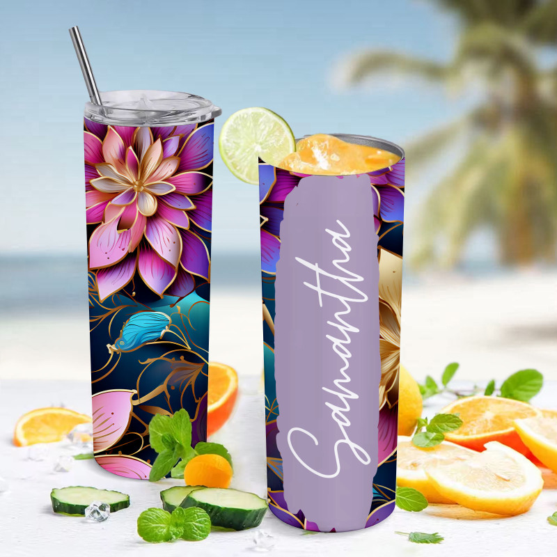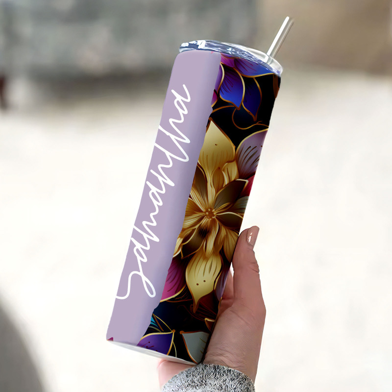 Personalized Name Floral Tumbler Retro Summer Wedding Gift